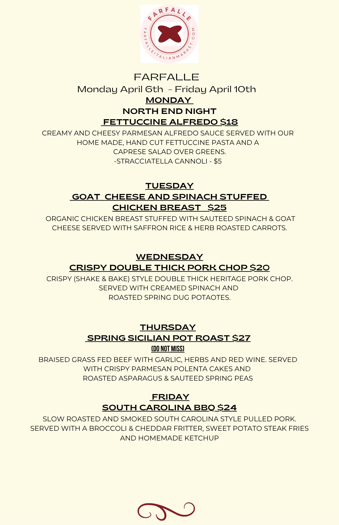 Private events, In home chef dinners, catering, lunch, dinner, wine tastings, delivery. Call us to inquire.