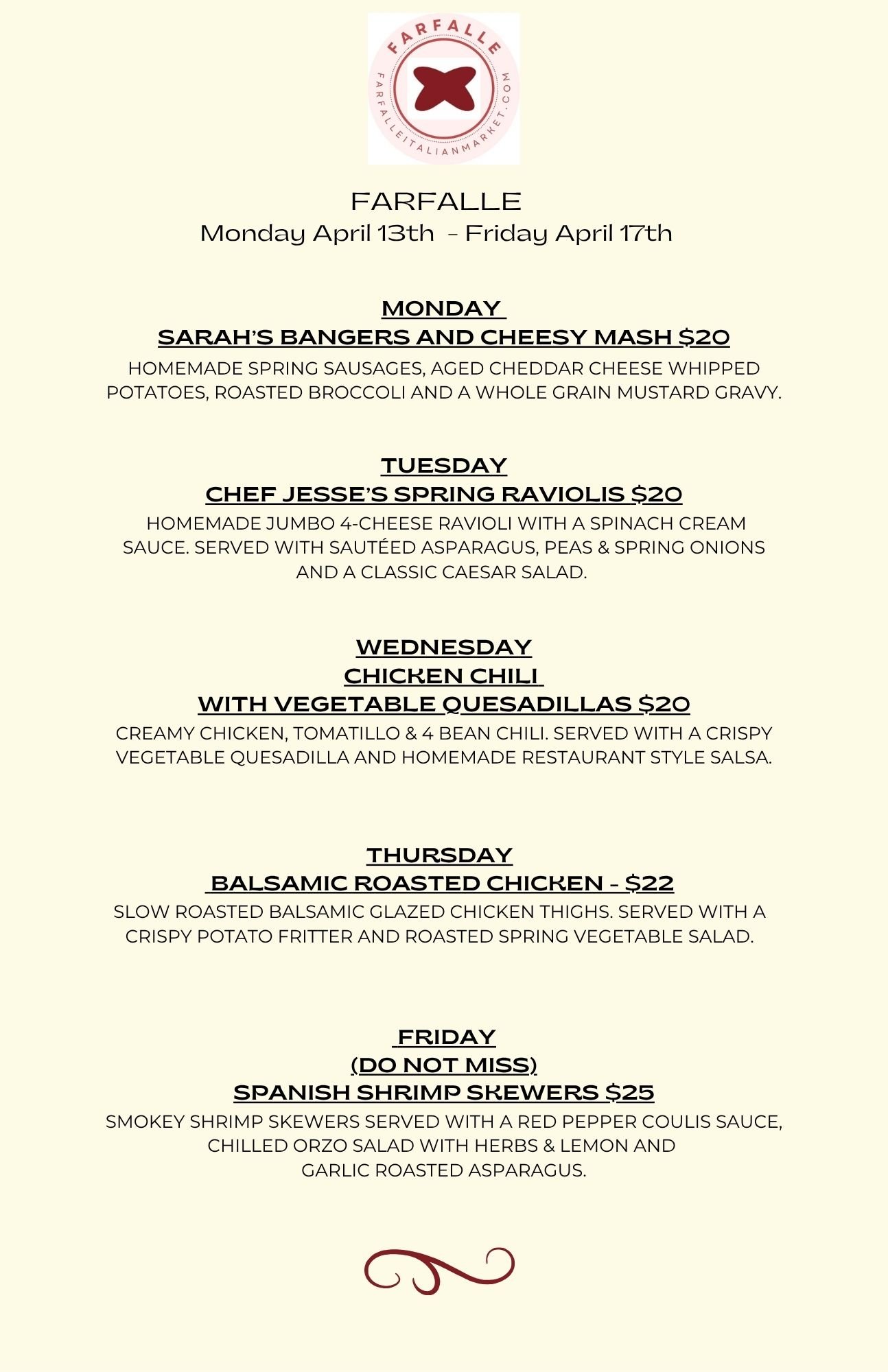 AT FARFALLE WE HAVE LOTS OF READY PREPARED FOODS, MARINATED VEGETABLES, PANINIS AND HOT SOUP!